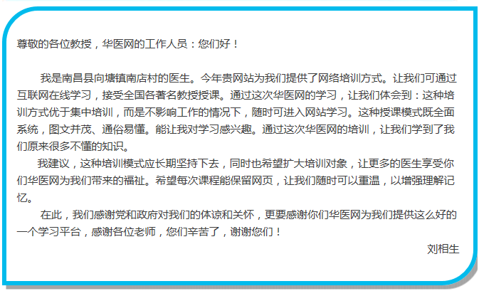 放下电话我们久久不能平静,学员们对华医教学模式的肯定,也是对我们华医人工作的肯定。今后我们要更用心,更努力的为广大学员们提供优质服务,打造一个更好的平台,让大家的学习、生活和工作都变的更美好。