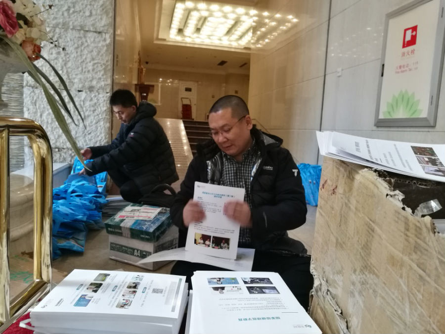 2018年3月5日,内蒙医院协会基层卫生分会成立大会暨内蒙古基层培训APP培训会议紧密筹备中。华医内蒙校区团队全员上阵在会议签到台前进行会议服务工作。在参会人员签到时,分发“内蒙古基层卫生培训APP”项目介绍材料。