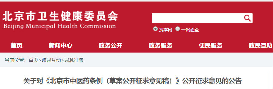 近日,北京卫健委发布“关于对《北京市中医药条例(草案公开征求意见稿)》(以下简称《意见稿》)公开征求意见的公告”。
