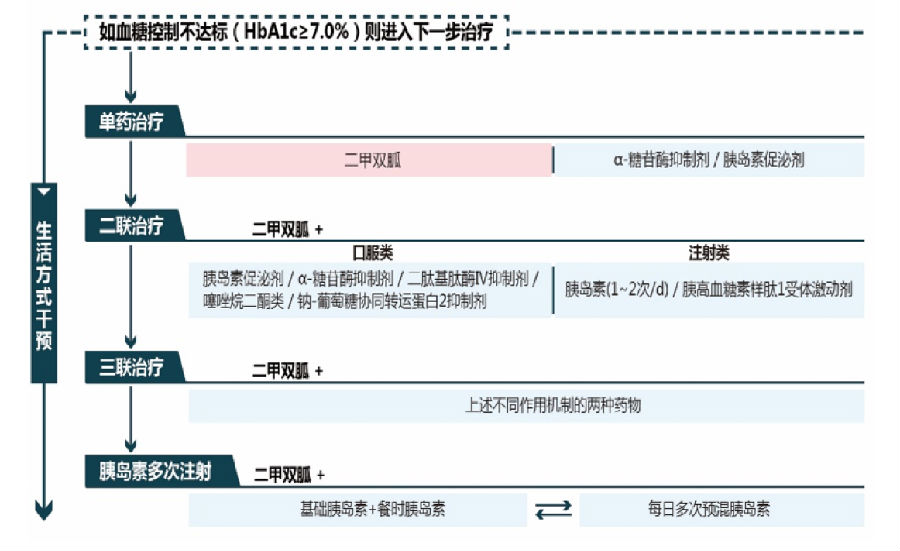 2型糖尿病患者通过改变生活方式和口服降糖药联合治疗,仍不足以控制血糖,应适时积极启用预混胰岛素起始治疗。要想达到降糖治疗有效性与安全性的平衡,应积极调整和优化胰岛素剂量。