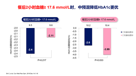 图2. 8958研究:餐后2小时血糖≥17.6 mmol/L时,中预混降低HbA1c更优