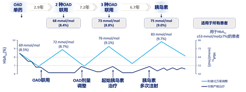 中国大规模真实世界研究2显示,我国糖尿病患者起始胰岛素治疗的时机较晚,超三分之一已经合并并发症,为了制定以降低并发症为目的的血糖管理策略,HbA1c长期达标是不可忽视的关键指标。