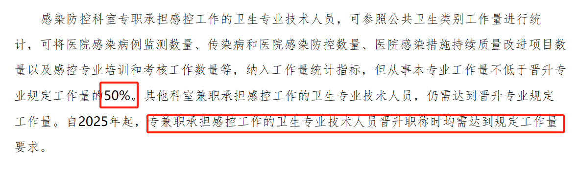 自2025年起,专兼职承担感控工作的卫生专业技术人员晋升职称时均需达到规定工作量要求。