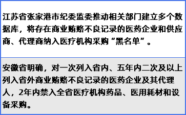 同时,多省也相继建立行贿人“黑名单”数据库,对行贿械企禁入市场。