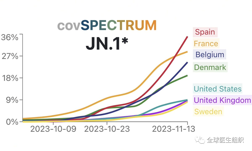 不仅仅是欧洲,新变体JN.1也在澳大利亚、新西兰、埃及、日本和其他地区呈现流行趋势(国内尚未有官方报告数据)。