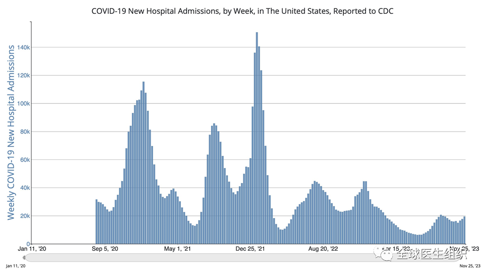 在美国,JN.1感染比例仍低于50%,但全美国范围新冠感染住院人数开始上升。各级医院统计数据显示,冬季呼吸道传染病的增长不能仅归因于JN.1变体,因为天气、室内聚集、缺乏缓解措施以及感恩节假期聚会都可能是诱因。