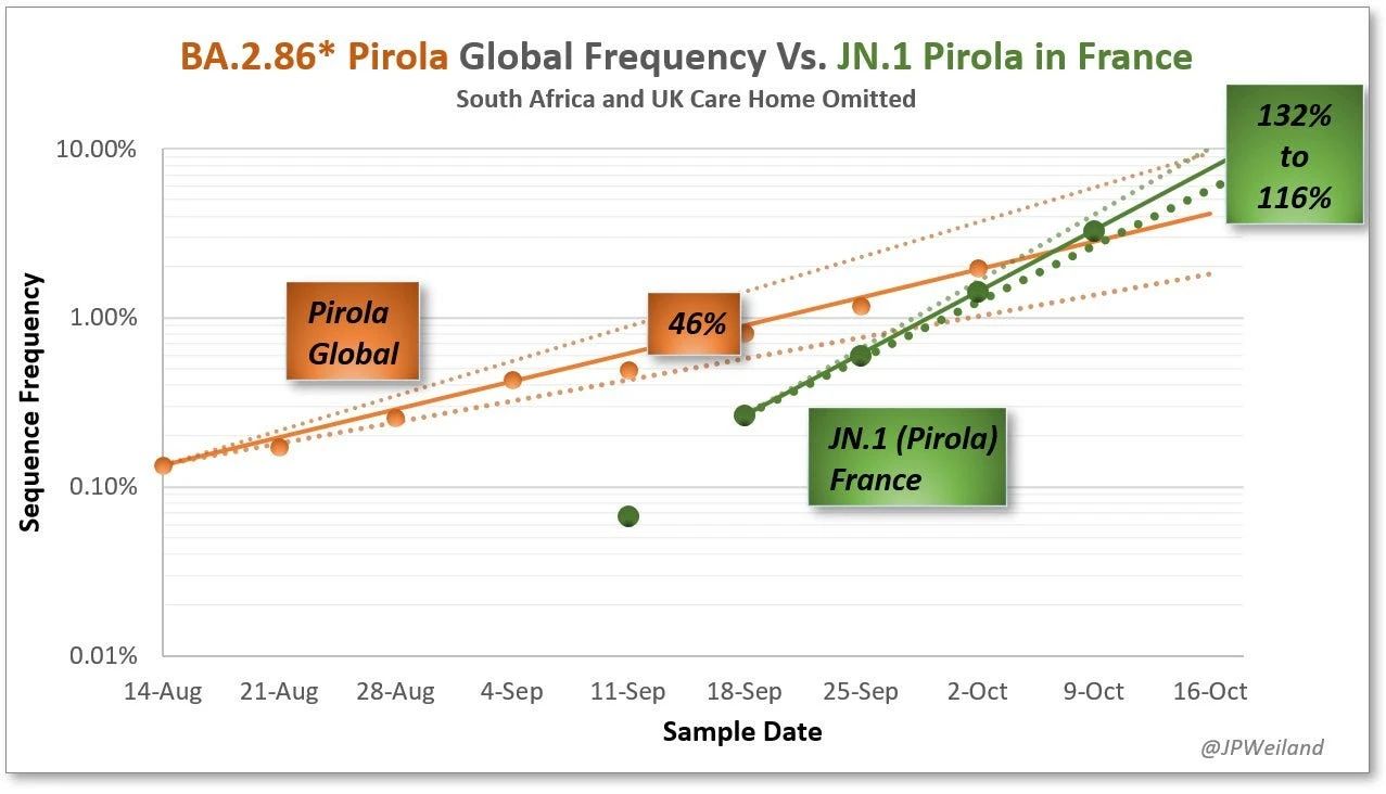 欧洲报告了许多病例,BA.2.86及其后代的感染数据也在不断增加。